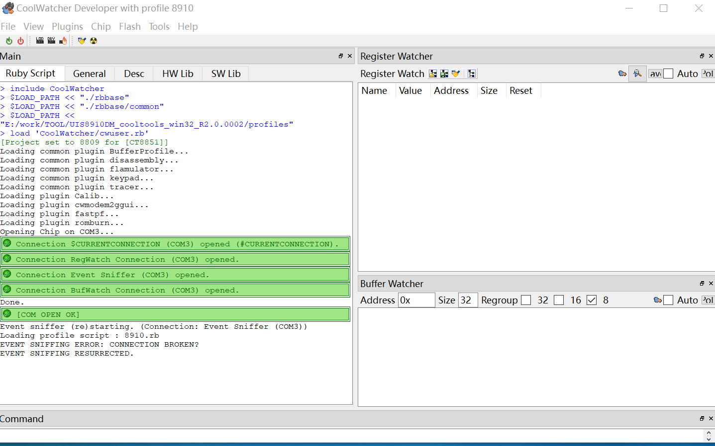 ### 1. 用Luatools V2工具抓底层日志 合宙官方调试工Luatools V2,除了可以进行升级固件操作,还可以用来抓取底层的日志,详细操作如下: 1. 下载[Luatools V2](http://www.openluat.com/Product/file/luatoolsV2-redirect.html "Luatools V2")后打开,并且允许工具升级。 2. 安装[USB驱动](http://www.openluat.com/Product/file/uis8910dm/sw_file_20200303181718_8910_module_usb_driver_signed%20_20200303_hezhou.7z "USB驱动") 2. 用USB线直接连接模块的USB管脚到PC的USB接口  3. 打开luatools,勾选4G USB打印  4. 给模块上的会自动有打印  5. 在luatool v2\log\4gdiag目录下可以看到正在自动生成.bin和.tra文件,大小正在正在增加说明正在生成底层日志  6. 需要停止,只需要关闭luatool即可 其中.bin为AP日志,.tra为CP日志 ------------ ### 2. 从HOST UART接口抓AP日志 在一些应用场合,USB被占用了,无法通过USB在抓底层日志的情况下,还可以通过HOST UART接口抓取AP日志,步骤如下: 1. 下载[cooltool](http://openluat-erp.oss-cn-hangzhou.aliyuncs.com/erp_site_file/product_file/sw_file_20200428182924_8910_coolwatch_win32_R2.0.0002.7z "cooltool")工具 2. 用USB转TTL数据线连接模块的UART1管脚 Air720U:  Air724U:  3. 模块开机后,通过串口工具发AT^TRACECTRL=0,1,3 这个指令,将日志打开之后关机 ` 注意:AT^TRACECTRL=0,1,3是永久生效的,可以断电保存` 2. 用USB转TTL数据线连接模块的HOST UART管脚 Air720U:  Air724U:  3. 打开cooltool   4.打开trace栏  5. 模块开机,日志会在trace栏中打印出来  6. 抓到想要的日志后,点击保存即可  ------------ ### 3. Android & LINUX 主控抓底层日志方法 详细请见https://oldask.openluat.com/article/1065