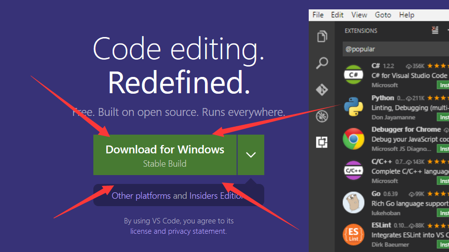 # 下载安装 打开官网:[https://code.visualstudio.com/](https://code.visualstudio.com/) 点击官网那个大大的绿色按键,下载 ...